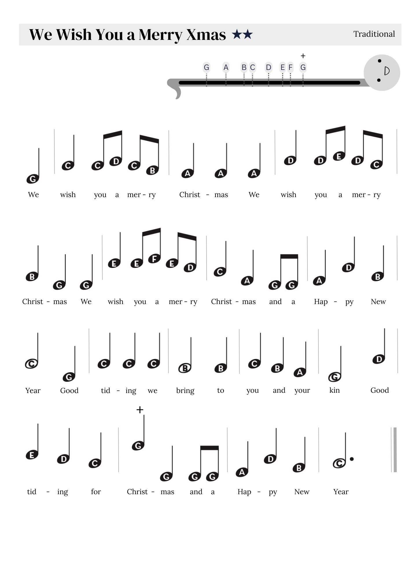 We Wish You a Merry Christmas is a traditional holiday carol. This free sheet music is offered as a seasonal practice resource alongside our Otamatone book.